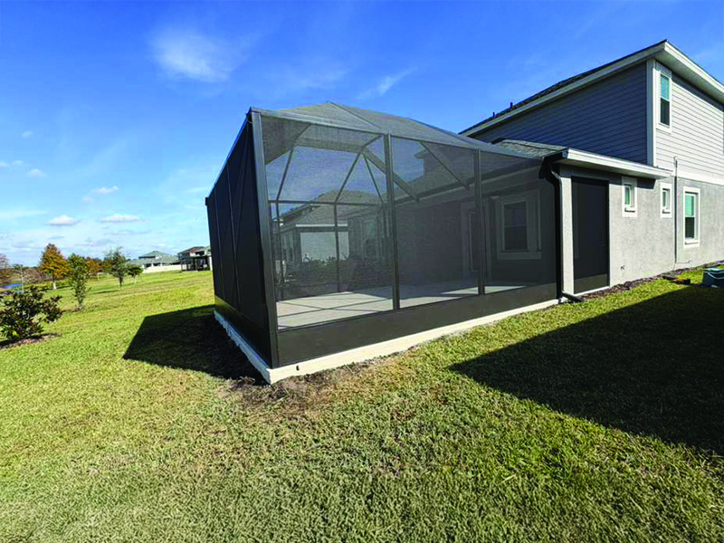 Roof Integration: Screen enclosure tied into the existing covered lanai with a new 7″ super gutter