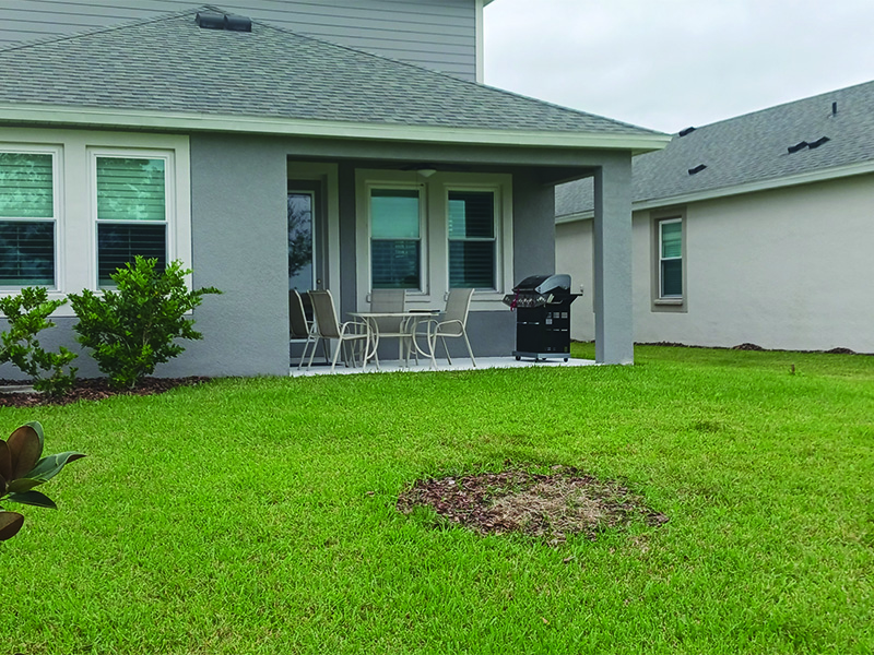 Foundation: New 4″ concrete slab with acrylic texture and finish in Pina Colada